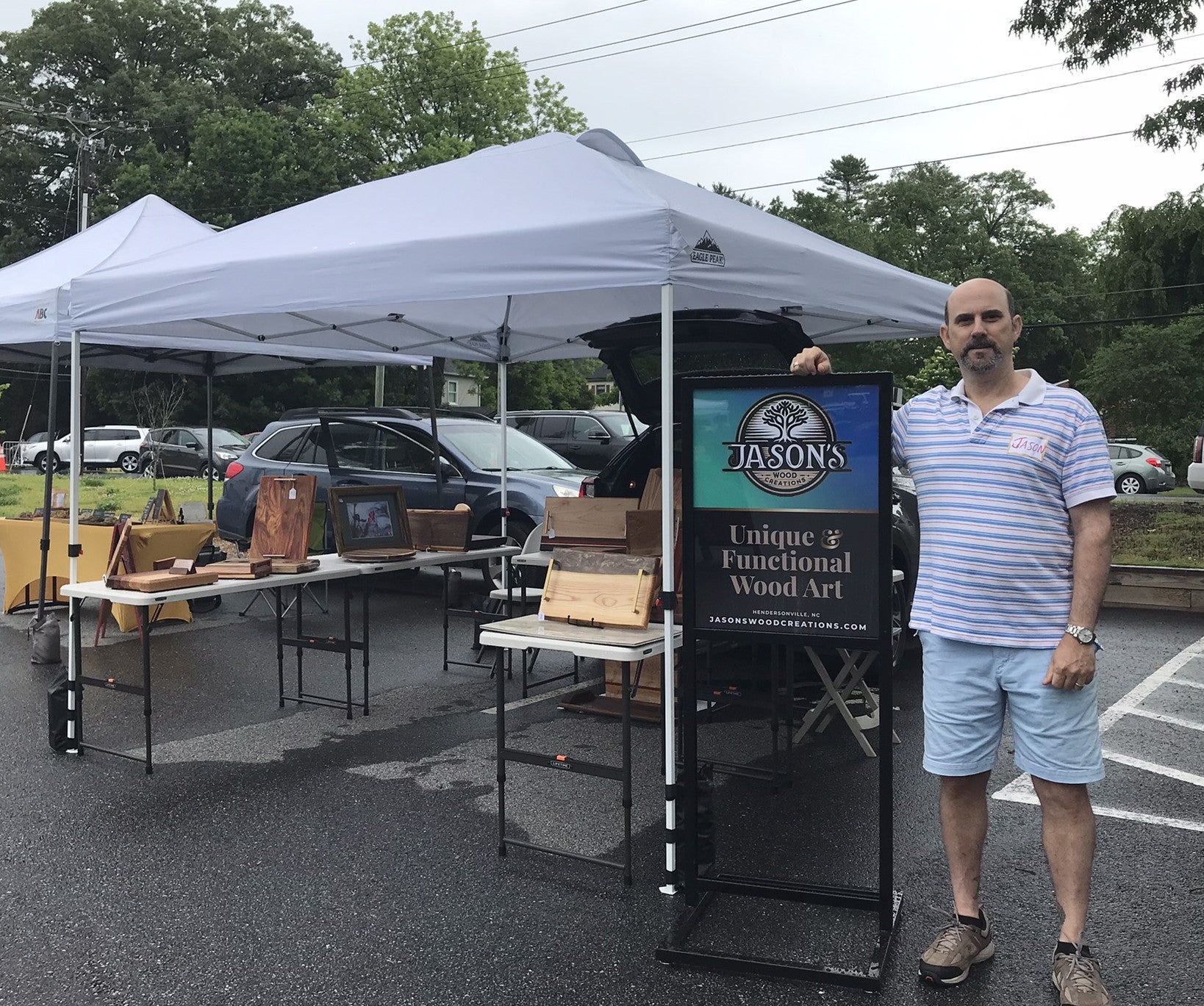 Jason's woodwork is also for sale in an arts and crafts gallery and in an antique store in the Greater Asheville, NC area. He also attends a local farmer's market on Saturday mornings and sells items via this website.